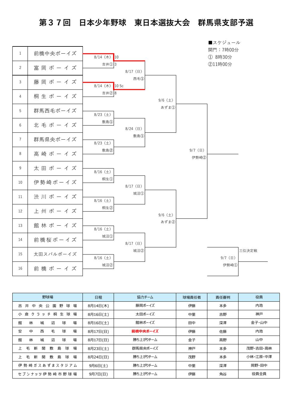 【予選リーグ結果】第2回日本少年野球 安中市長杯 秋季群馬県支部大会