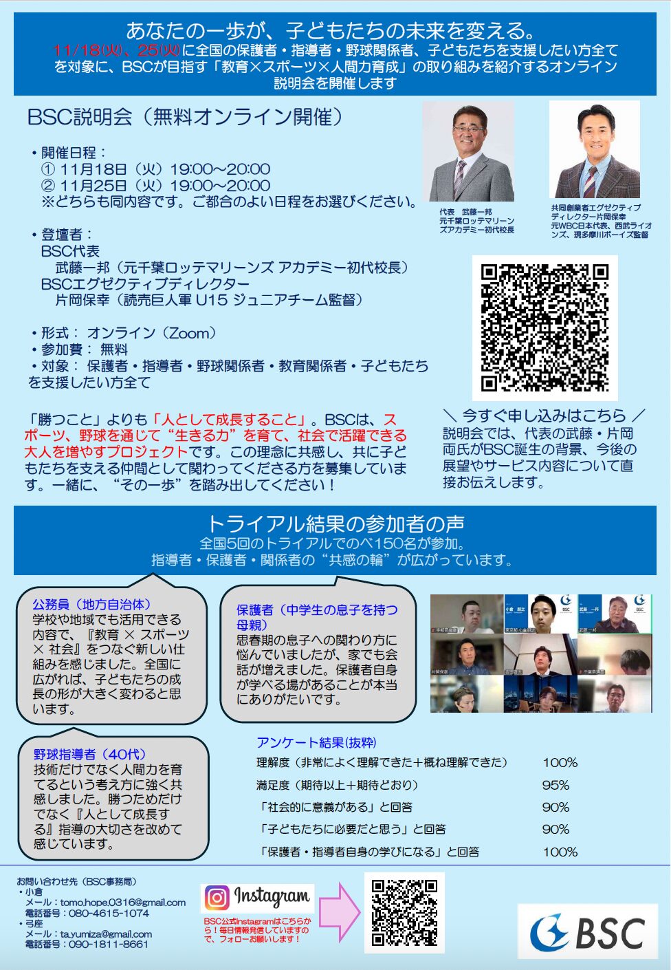 BSCの代表には、武藤一邦氏(元千葉ロッテマリーンズアカデミー初代校長)。
