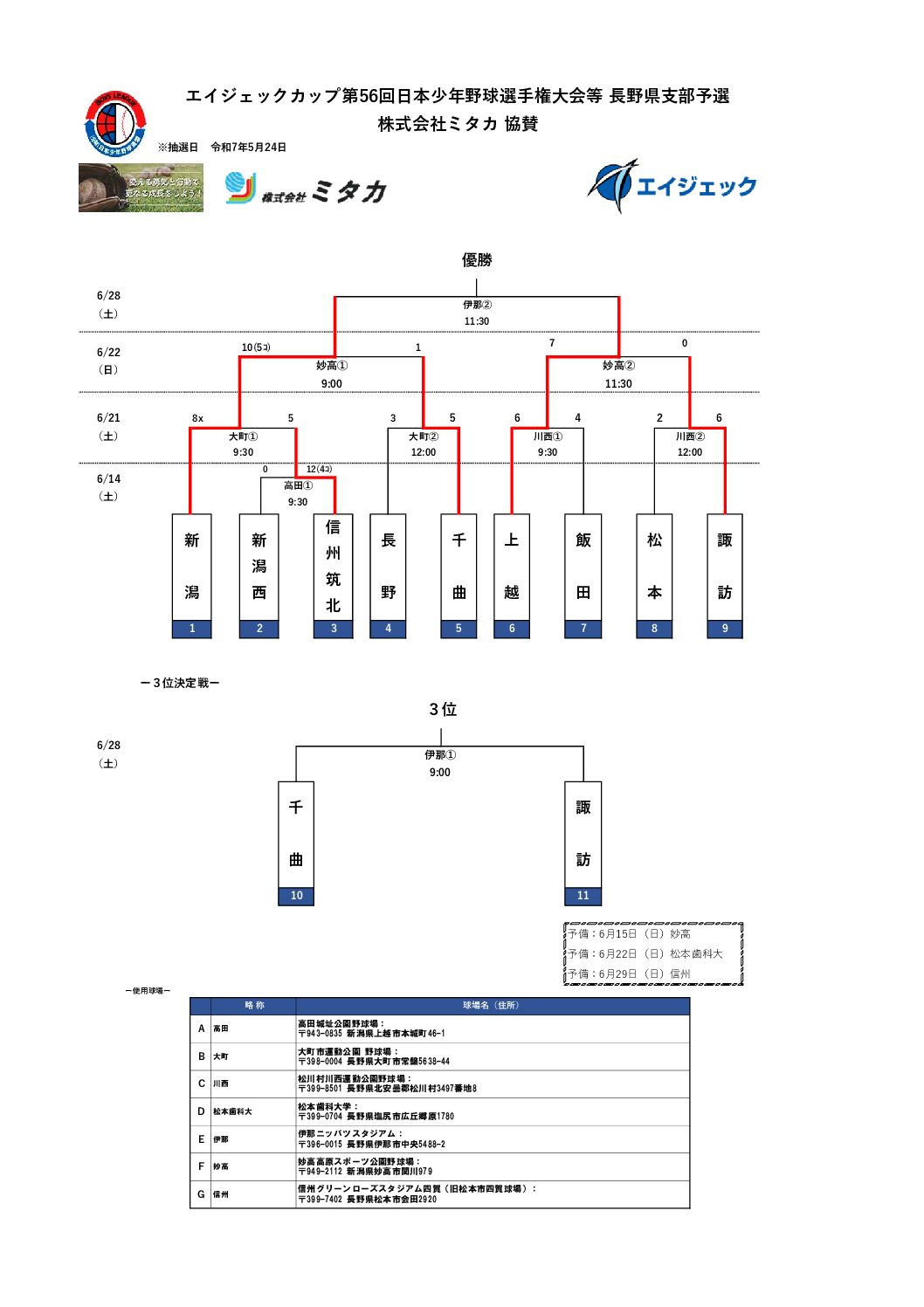 【長野県支部】エイジェックカップ第56回日本少年野球選手権大会等 ㈱ミタカ協賛 長野県支部予選(2025/6/22結果)