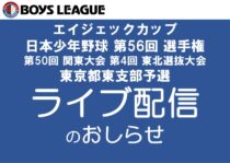 優勝チームは、リトルシニア、ポニーリーグの代表チームを交えた東京都予選へ進出します。
