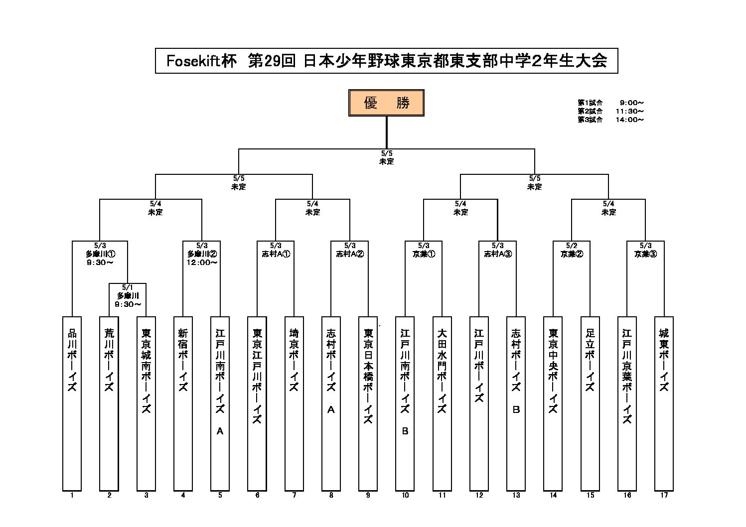 第3回ナガセケンコーカップ 日本少年野球東京都東支部秋季大会 組合せ