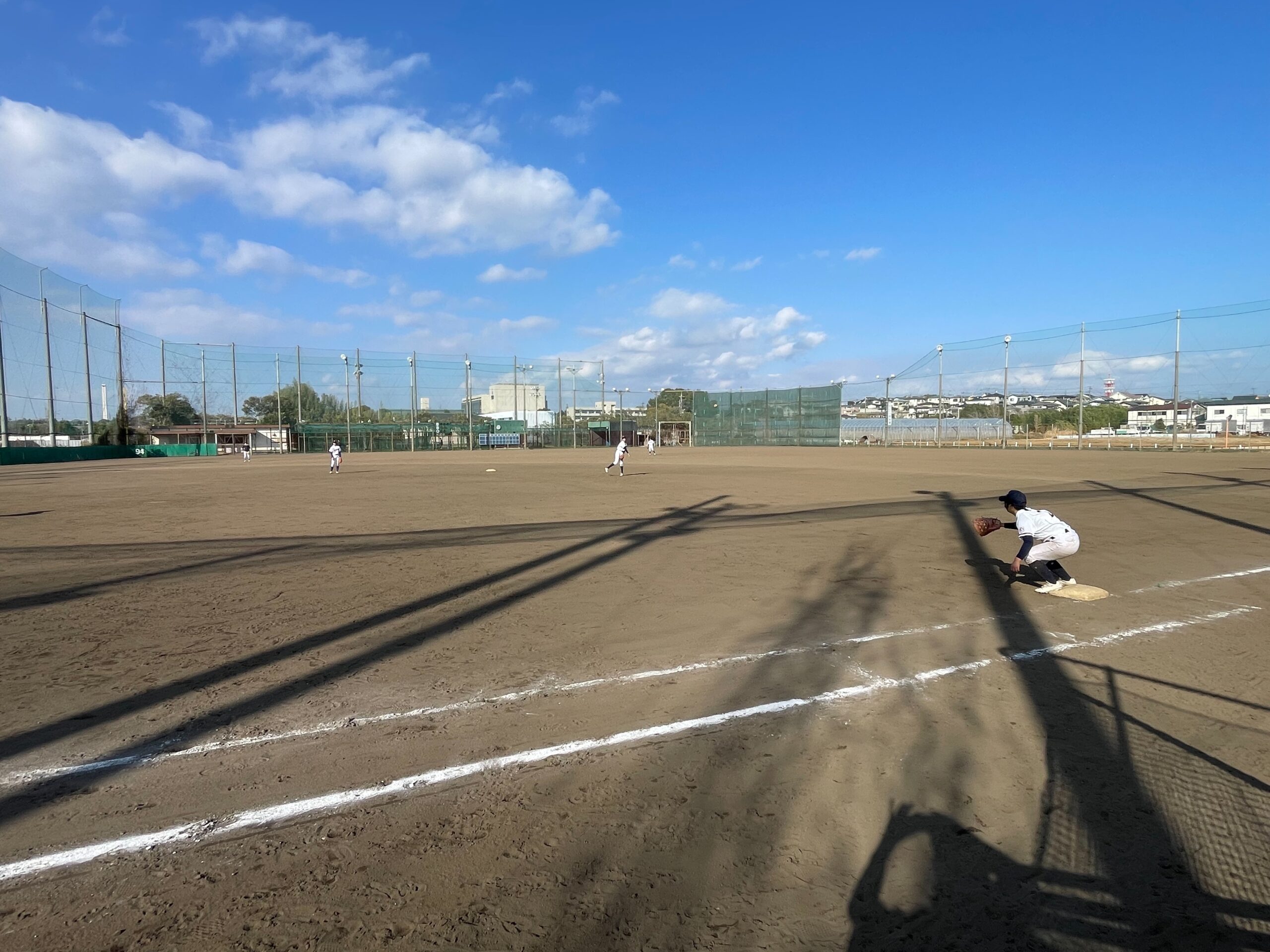 午前中は、走塁練習から始まりキャッチボールや