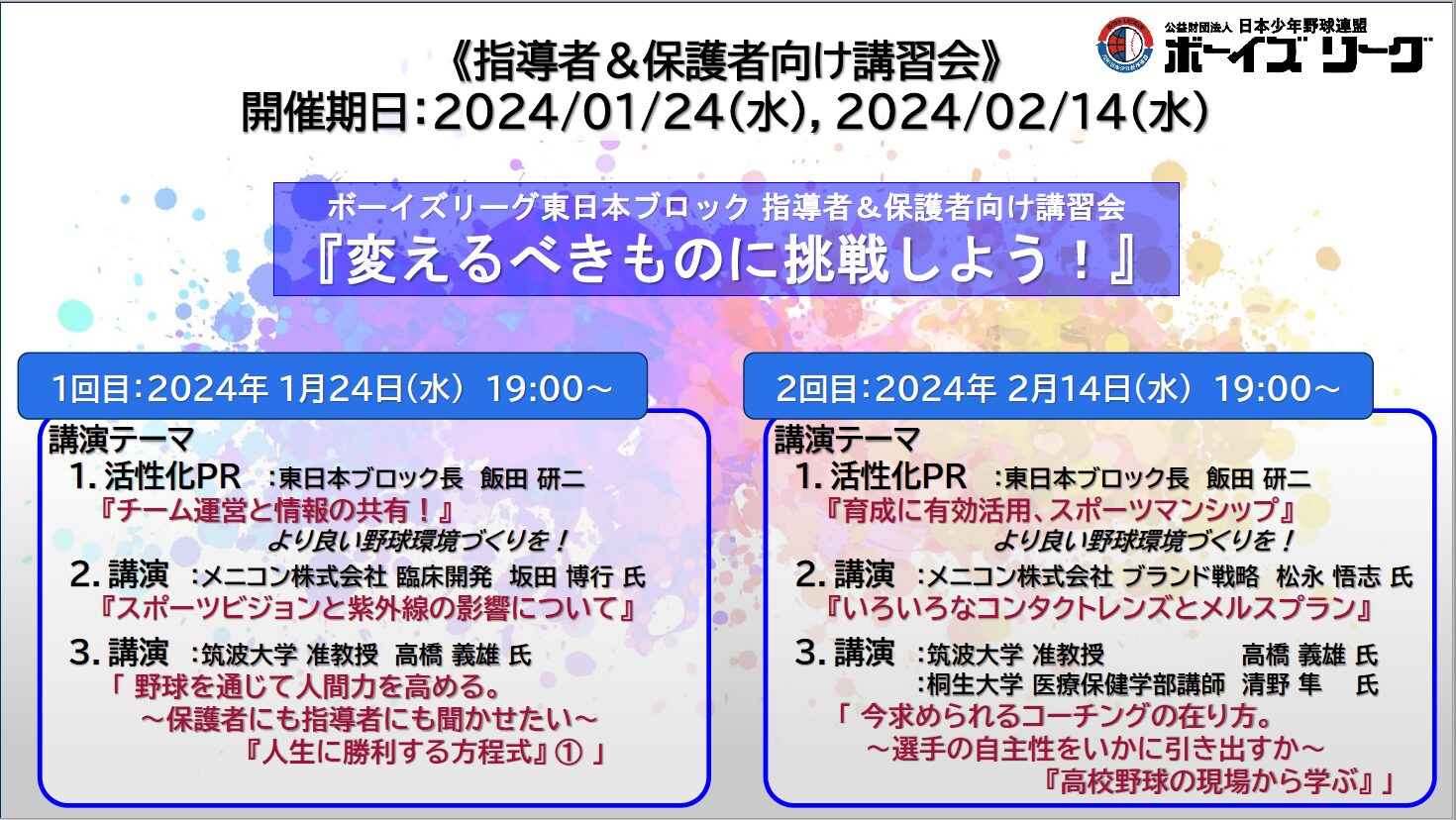 明日2月14日開催!! ボーイズリーグ東日本ブロック 指導者&保護者向け講習会のご案内