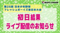 昨年準優勝の流山ボーイズ(千葉県・東京都東支部)も奈良葛城ボーイズ(関⻄ブロック)に敗れ初戦で姿を消す幕開けとなった。