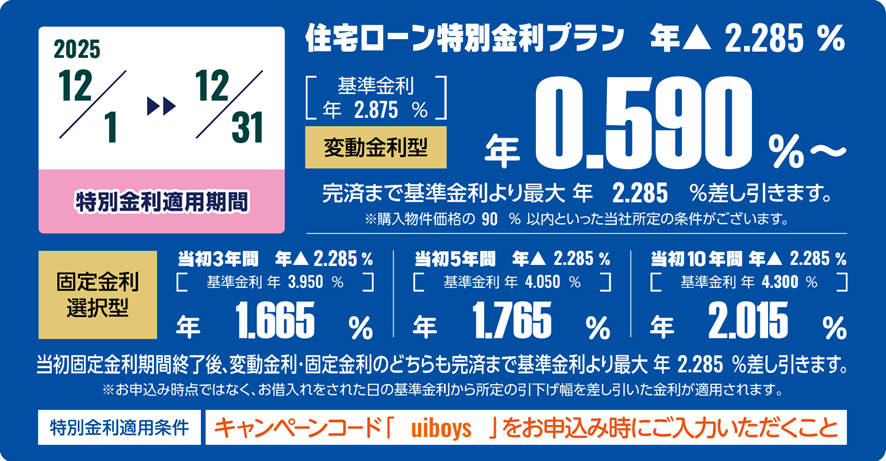 ■ボーイズリーグ限定 住宅ローンの特別金利プラン(12月度)
