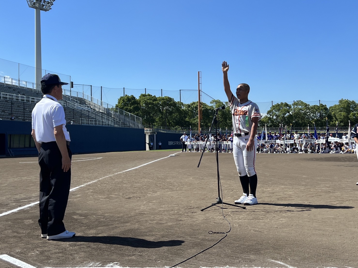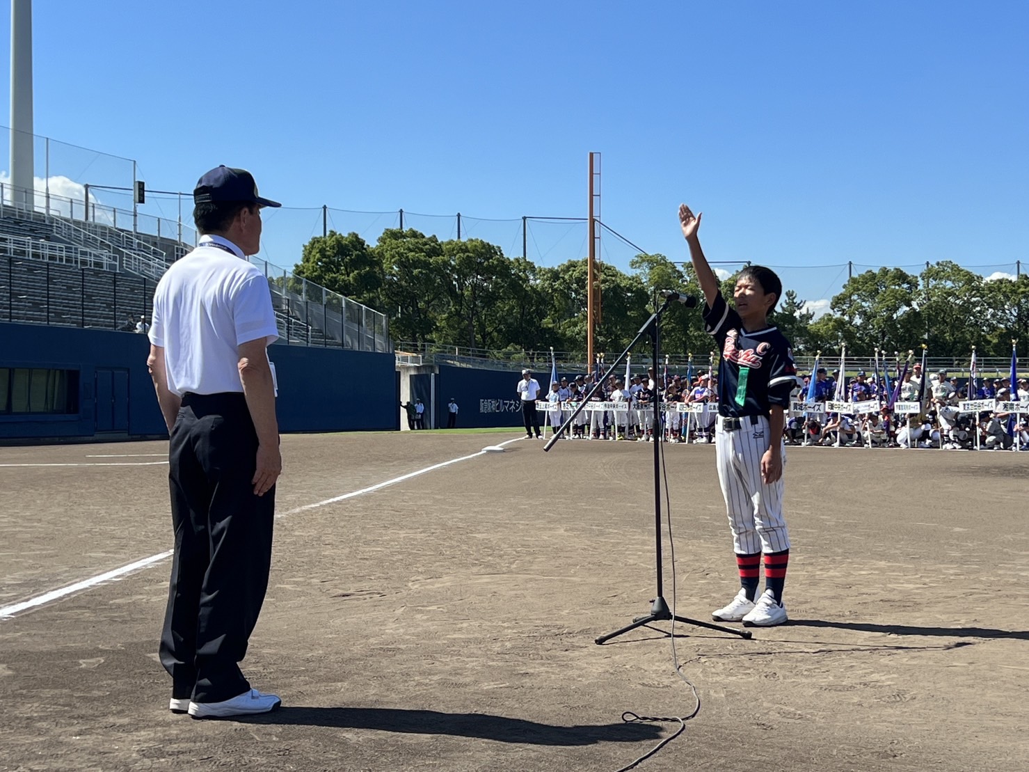 小学生の部は中西瑛大(大阪泉州ボーイズ)、中学生の部は松本太翔(生駒ボーイズ)の選手宣誓により開幕。この日は8会場で中学生の部16試合が行われた。