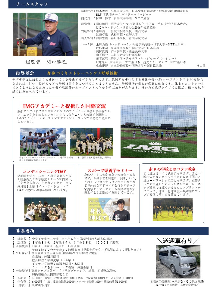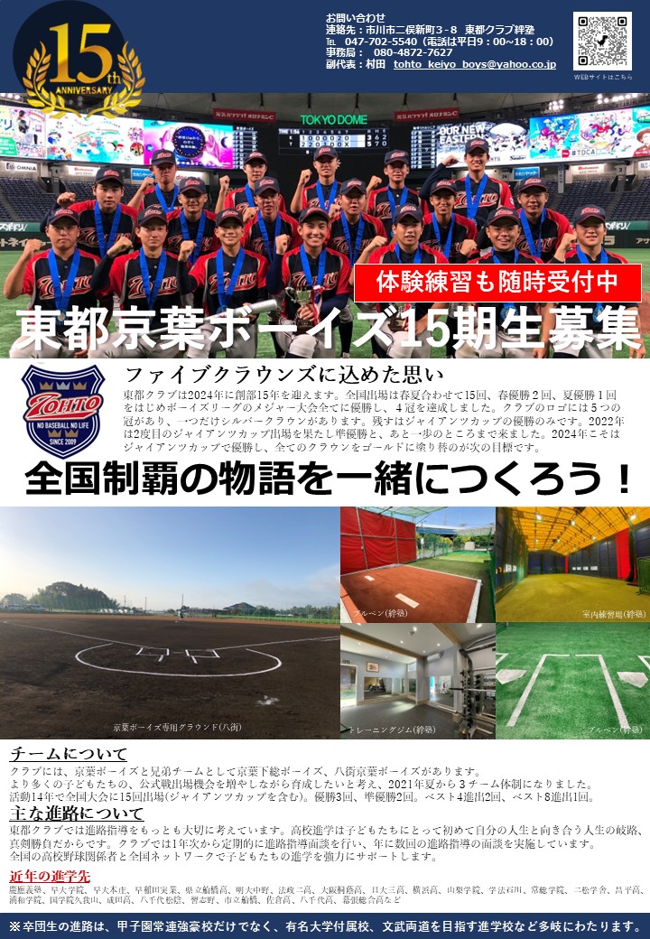 東都京葉ボーイズは2024年春入部の新入生の入団受付を始めました。
