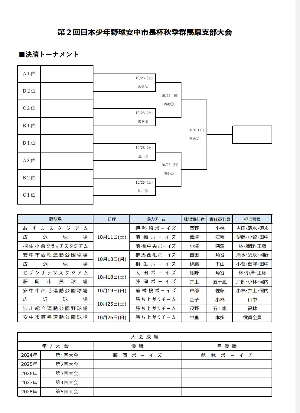 11日(土)より「第2回日本少年野球安中市長杯秋季群馬県支部大会」が県内各地の会場で開催されます。