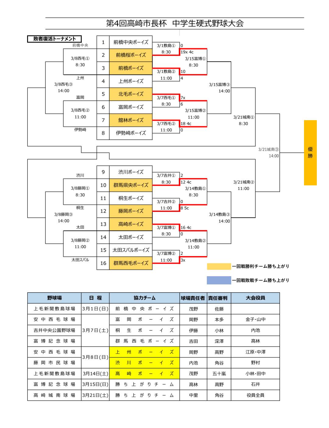 【3/7結果】第4回高崎市長杯 中学生硬式野球大会