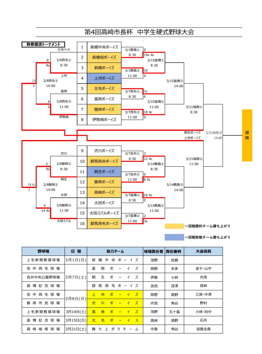 【3/8結果】第4回高崎市長杯 中学生硬式野球大会