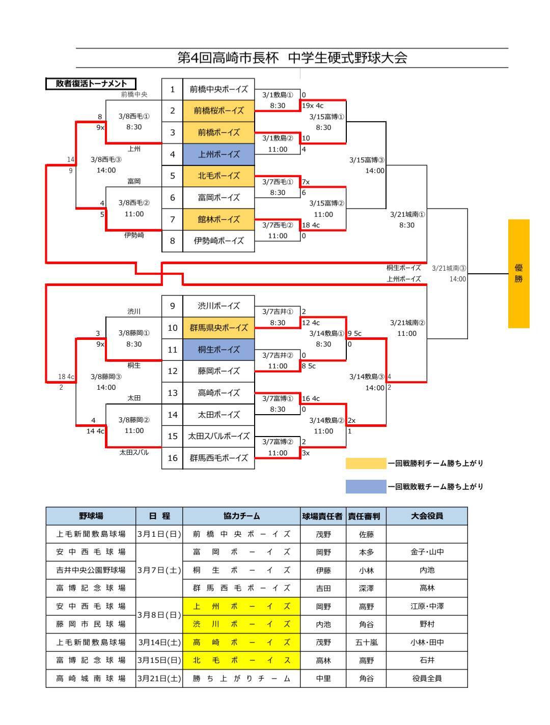 【3/14結果】第4回高崎市長杯 中学生硬式野球大会