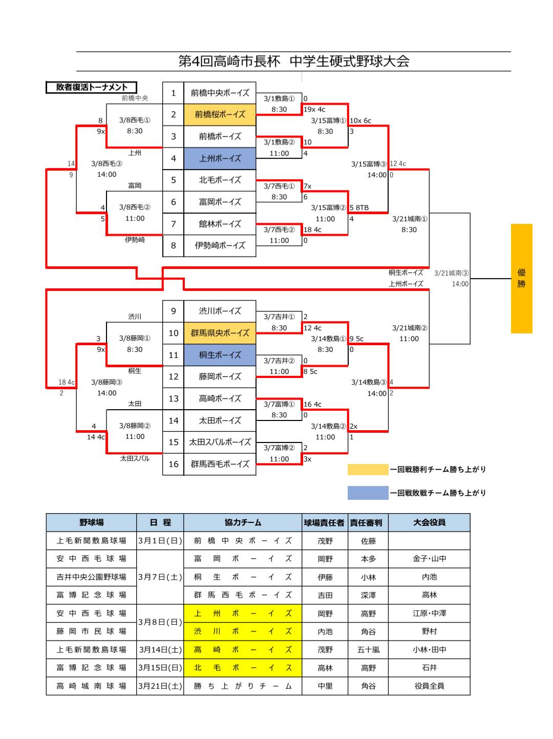 【3/15結果】第4回高崎市長杯 中学生硬式野球大会