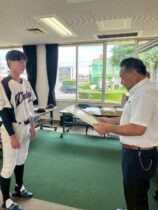 7回まで好投の上野君は制限球数に到達したため8階から楢戸君がマウンドへ。