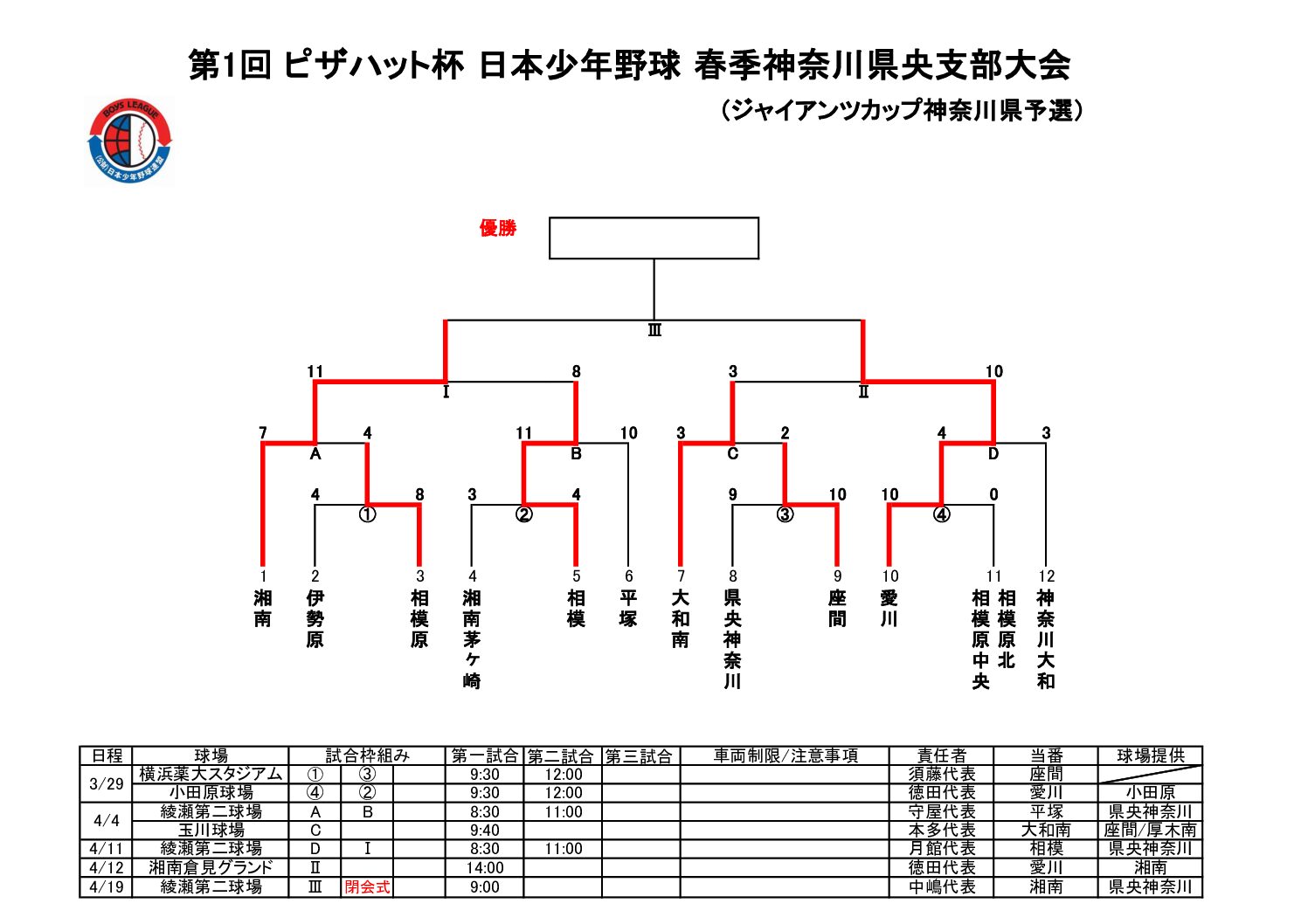 第1回 ピザハット杯 日本少年野球 春季神奈川県央支部大会 本日決勝です!