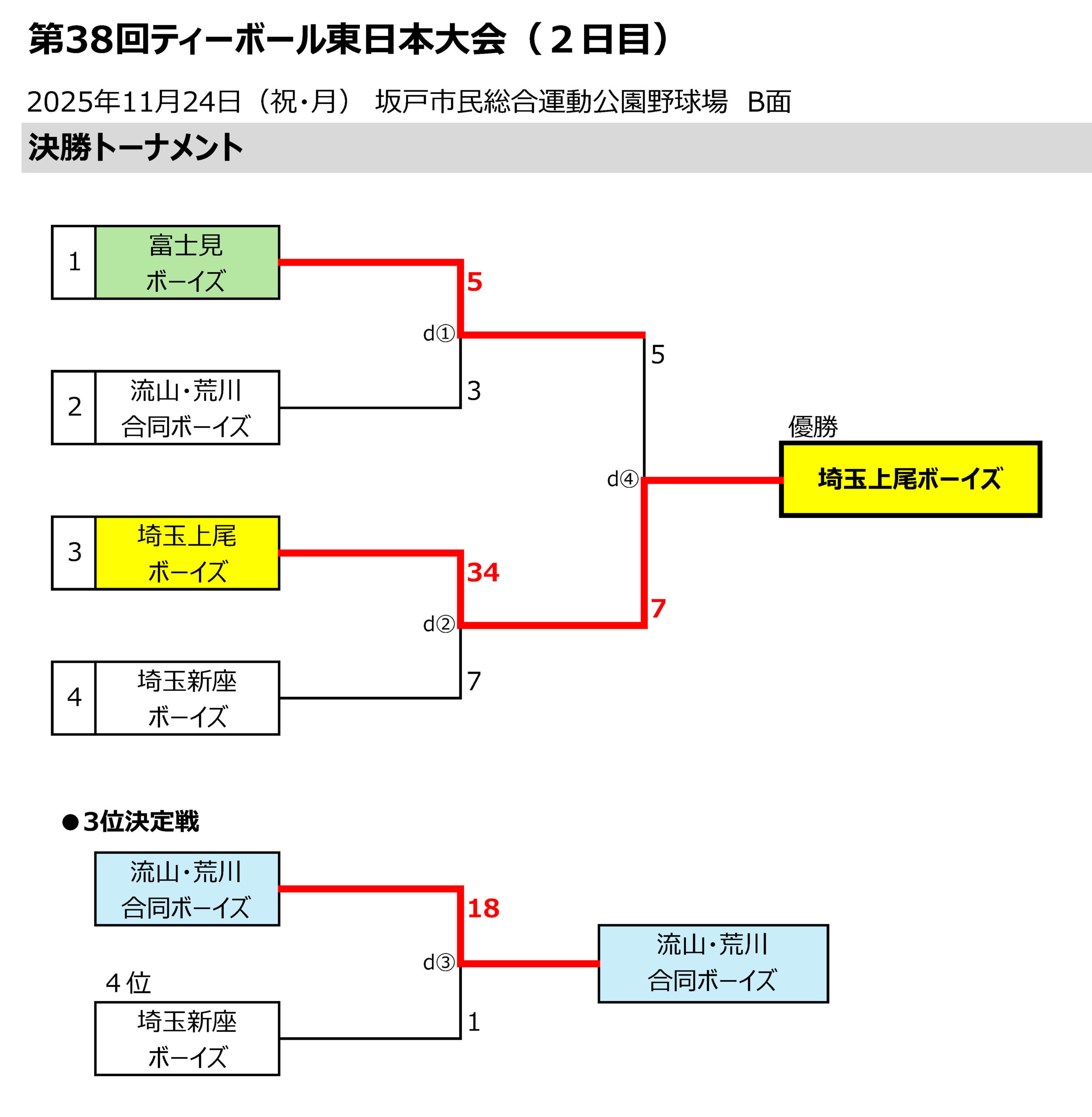 「第38回ティーボール東日本大会」は、11月24日(祝・月)、秋晴れの坂戸市民総合運動公園野球場B面にて決勝トーナメントを実施しました。。