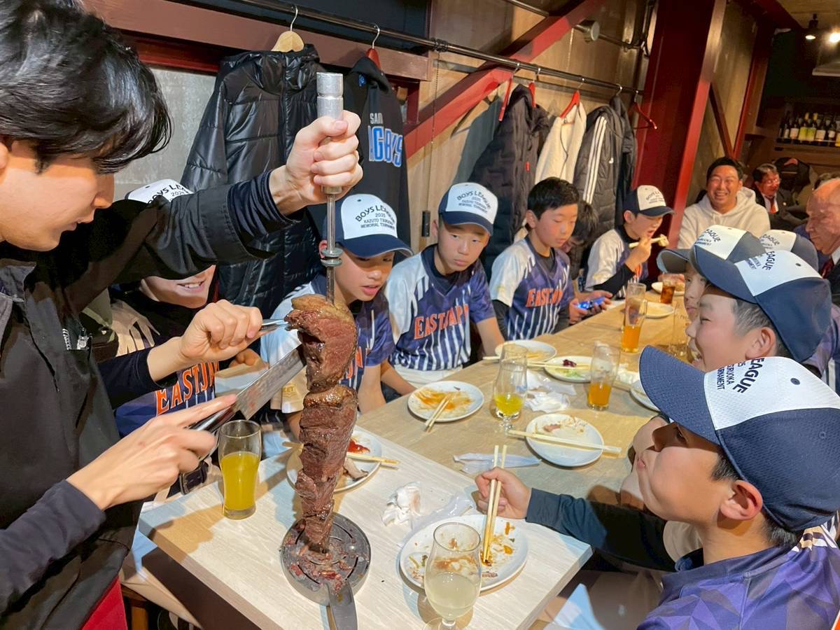 12月14日(日) 今夏行われた、フクダ電子カップ 第25回 ボーイズリーグ 鶴岡一人記念大会に見事優勝🏆した東日本選抜チームが「シュラスコ&ビアレストラン ALEGRIA omiya アレグリア大宮」に選手、父兄、チーム関係者、総勢70名が集まり開催しました🍖