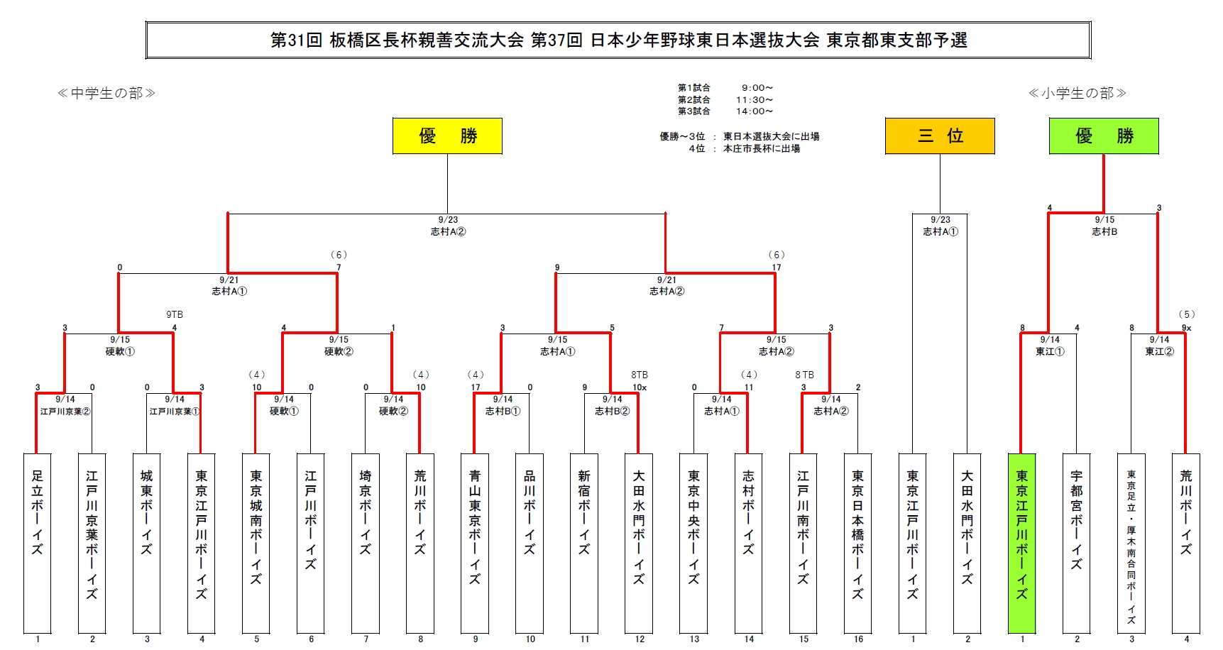 【三日目の結果】第31回 板橋区長杯親善交流大会 第37回 日本少年野球東日本選抜大会 東京都東支部予選