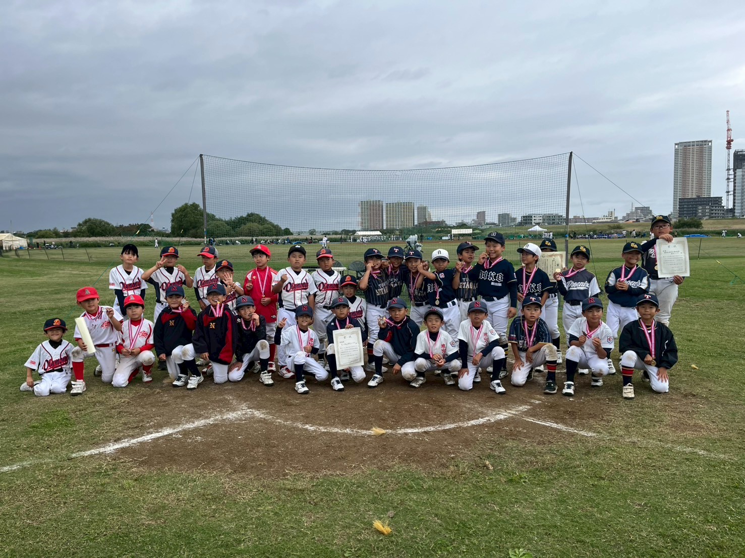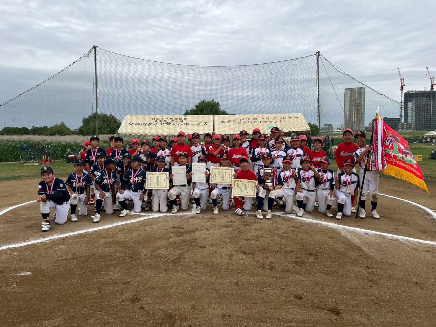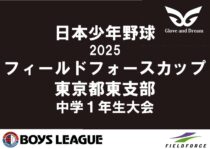 リーグ戦形式で実施された小学生の部は、1勝1敗で3チームが並びましたが、大会規定により東京江戸川ボーイズが優勝となりました。試合途中には雨模様となり難しいコンディションの中、3チームそれぞれが力を尽くし、日頃の練習の成果を発揮する熱い戦いとなりました。