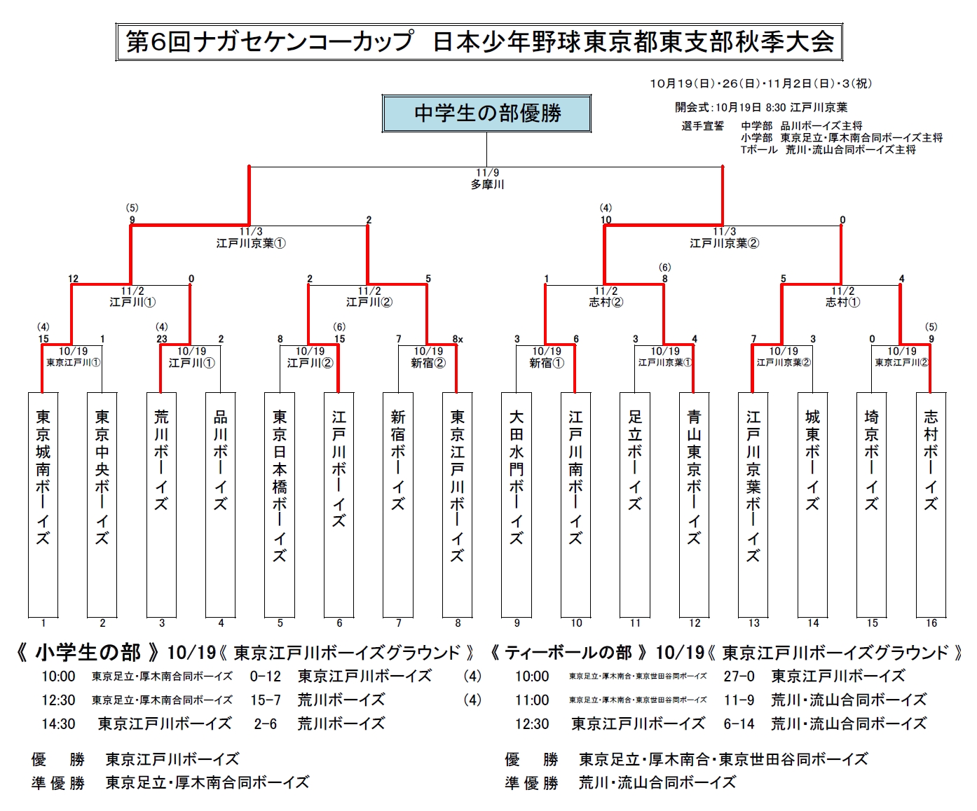 【準決勝の結果】第6回ナガセケンコーカップ 日本少年野球 東京都東支部秋季大会