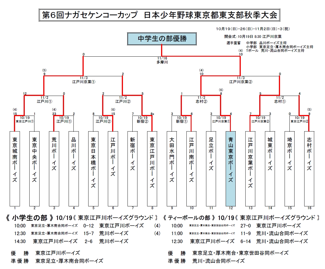 【決勝の結果】第6回ナガセケンコーカップ 日本少年野球 東京都東支部秋季大会