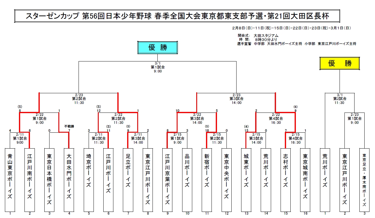 【三日目の結果】スターゼンカップ 第56回日本少年野球 春季全国大会東京都東支部予選・第21回大田区長杯