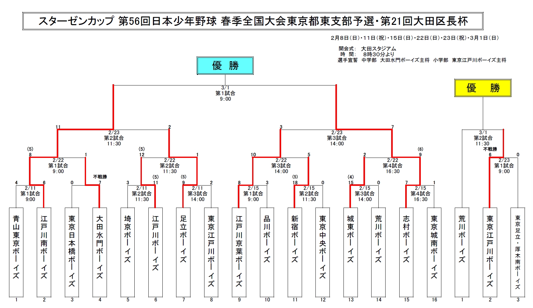 【四日目の結果】スターゼンカップ 第56回日本少年野球 春季全国大会東京都東支部予選・第21回大田区長杯