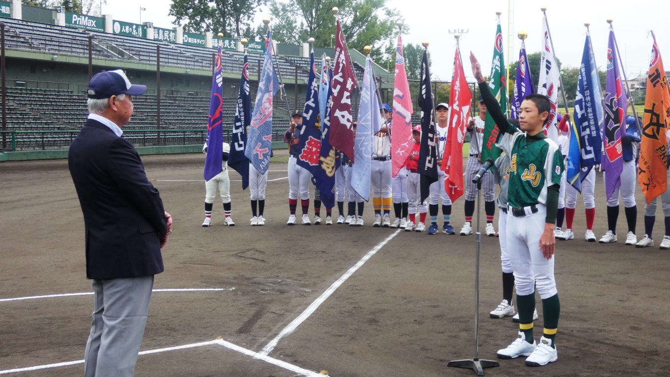 開会式がヨーク開成山スタジアムで実施され、中学部は、郡山ボーイズの大橋魁翔(おおはしかいと)選手が選手宣誓をおこなった。
